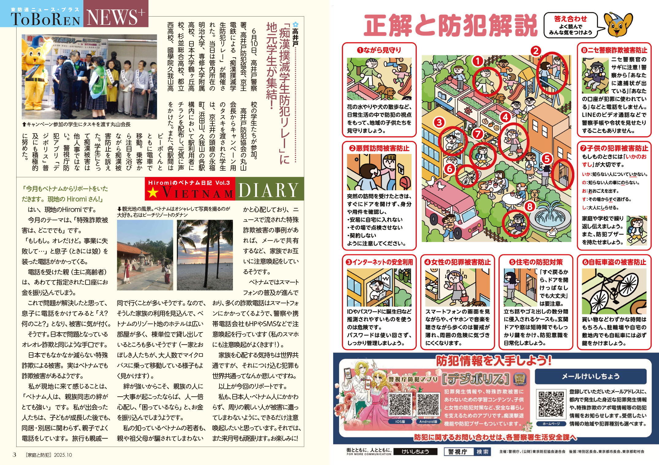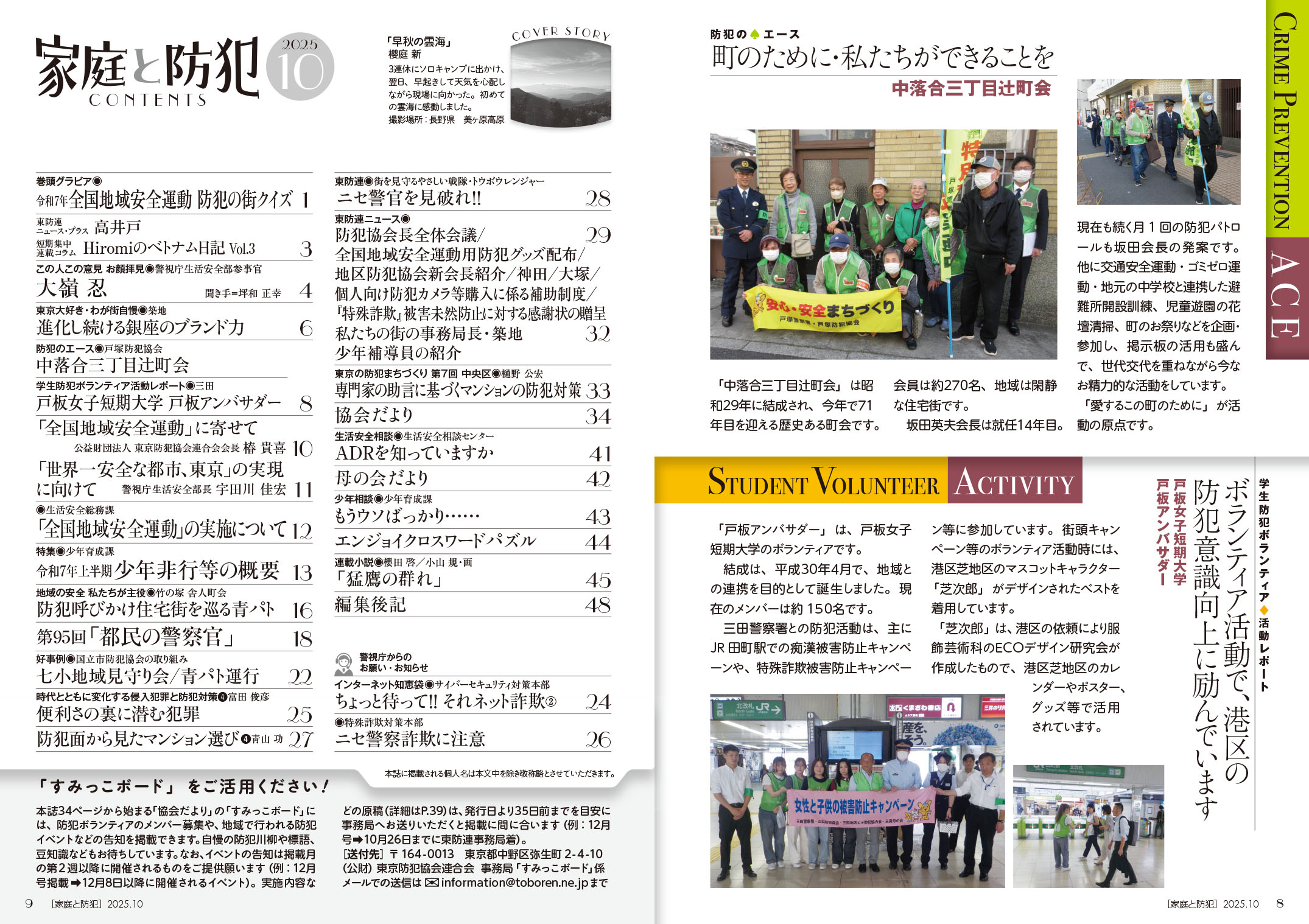 東京防犯協会連合会は、警視庁と一体となって「犯罪のない明るいまちづくり」を推進します。
