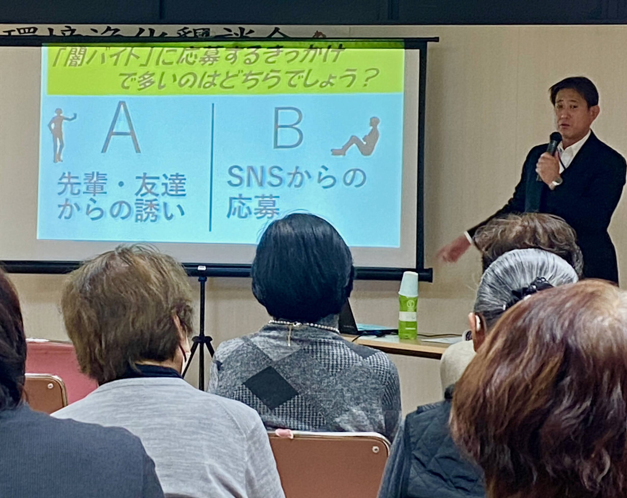 大学生3人=令和6年)、彼らのほとんどが「受け子」として使い捨てにされていると聞いてざわめく参加者。闇バイトはバイトではなく犯罪者だと知らな