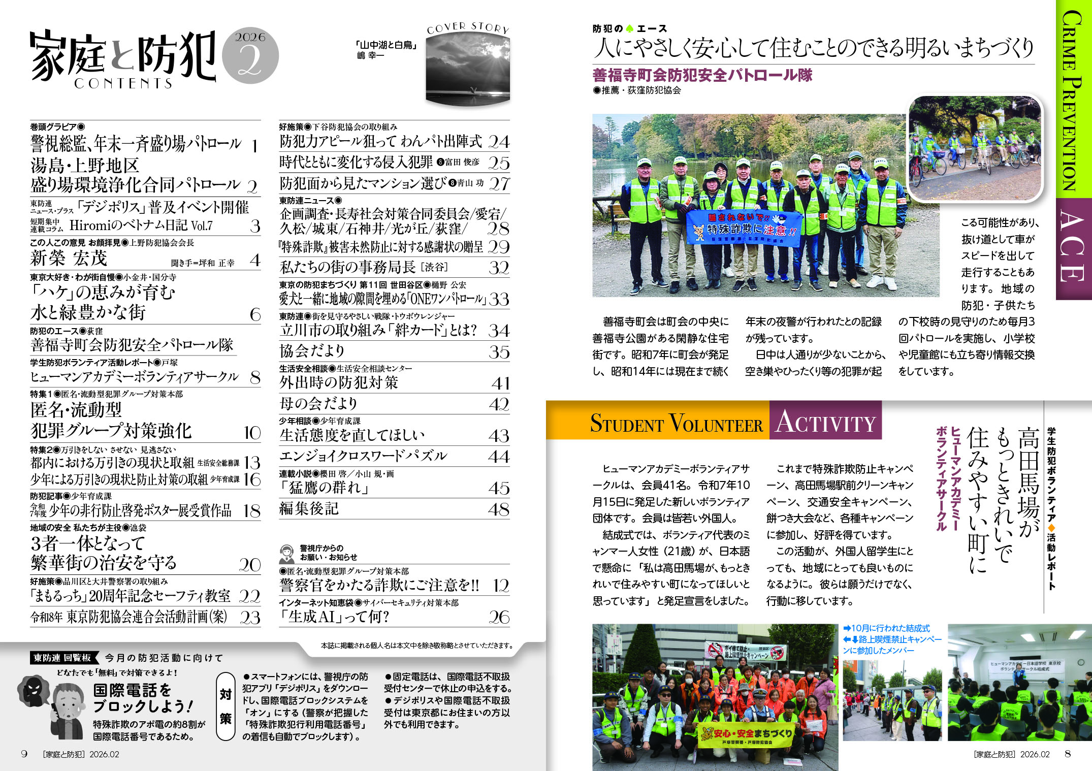 東京防犯協会連合会は、警視庁と一体となって「犯罪のない明るいまちづくり」を推進します。