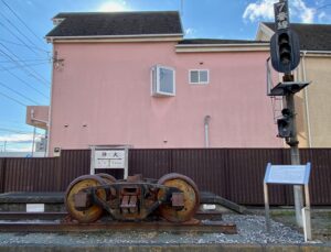 これは五日市鉄道大神駅跡のモニュメントです。ポケットパークになっていて、ちょっとした憩いの空間です。レールや信号機も当時を彷彿とさせます。大神駅は小さな無人駅だったそうで、昭和5(1930)年から19年まで、立川駅と拝島駅を結ぶ線の駅の1つとして運行していました。五日市鉄道は大正14(1925)年に拝島・五日市間で開業した鉄道で「五鉄」の愛称で親しまれていたそうです。