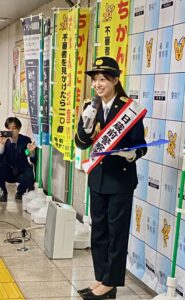 それに合わせ、蔵前警察署は管内の都営地下鉄浅草橋駅で、タレントの菊池柚花さんを「1日警察署長」に迎えてキャンペーンを実施しました。