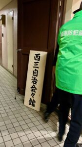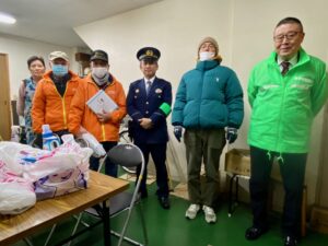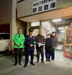 亀有四丁目町会会館でも夜警から帰るメンバーを待って留守を守っていました。